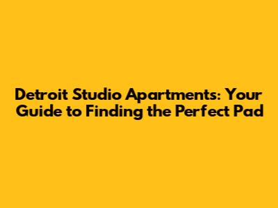 Detroit Studio Apartments: Your Guide To Finding The Perfect Pad