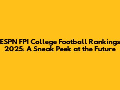 The ESPN FPI gives us a helpful look at what we can expect for the 2025 season. The FPI provides a useful, predictive tool that helps us anticipate key matchups and identify potential contenders. While this is all speculation, it gets us hyped! The future is never set in stone, so the season will be unpredictable. Every game will be a must-watch! Get ready for the 2025 season because it is sure to be full of excitement. It's time to get ready for some amazing college football! This is where the next generation of stars will emerge. The 2025 season is guaranteed to be a wild ride, and the anticipation is already building. So, stay tuned, keep following the FPI updates, and let's get ready for another amazing year of college football. Go team! And always remember: Enjoy the games, appreciate the competition, and embrace the surprises. Itβs going to be awesome!