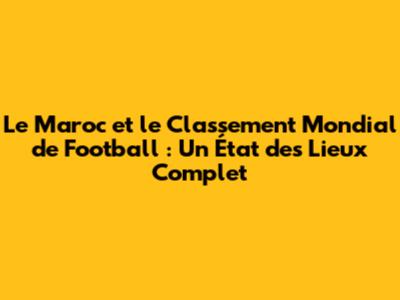 Salut les fans de foot ! On va plonger dans le vif du sujet : le classement mondial des équipes nationales de football, avec un focus spécial sur notre fierté nationale, le Maroc. On va décortiquer ensemble comment ce classement est établi, où se situe actuellement le Maroc, et ce que cela implique pour l'avenir de notre équipe. Préparez-vous, ça va être passionnant !