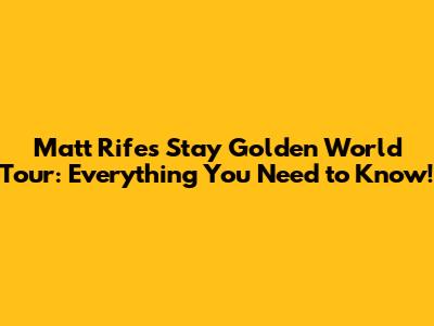Hey everyone! ð Ever heard the name Matt Rife? If not, you're in for a treat! This incredibly popular comedian is currently on his Stay Golden World Tour, and it's making waves across the globe. This article is your ultimate guide to everything you need to know about the tour â from dates and locations to ticket information and what to expect from the show. So, grab your favorite snack, and let's dive in! ð¿