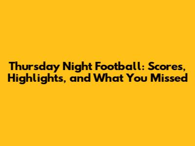 Thursday Night Football: Scores, Highlights, And What You Missed